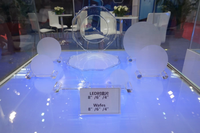 近年來,藍寶石產業一直被國家層面高度重視,藍寶石生產技術也得到了快速發展。蘇州恒嘉依托母公司昀豐科技(股票代碼:836709)的設備技術優勢,在大尺寸藍寶石晶體生長及晶體加工技術方面取得重大突破,其生產的藍寶石產品已經廣泛地應用于LED襯底、光學、消費類電子及軍工領域。在今年的展會上,蘇州恒嘉展示了包括藍寶石手機屏、4吋、6吋、8吋LED襯底、光學產品及大尺寸的藍寶石產品。